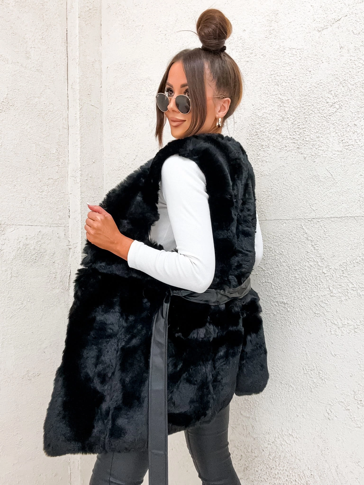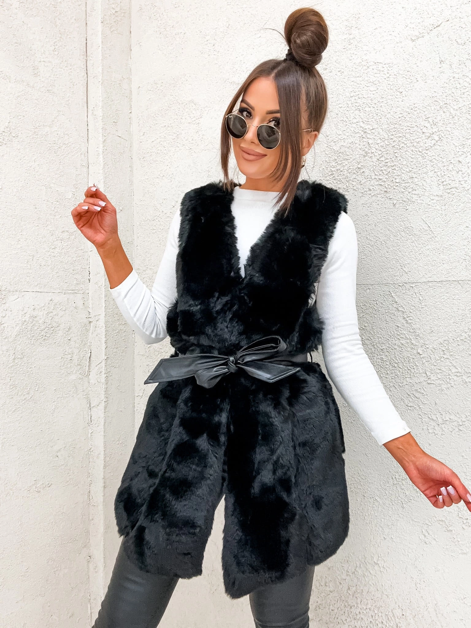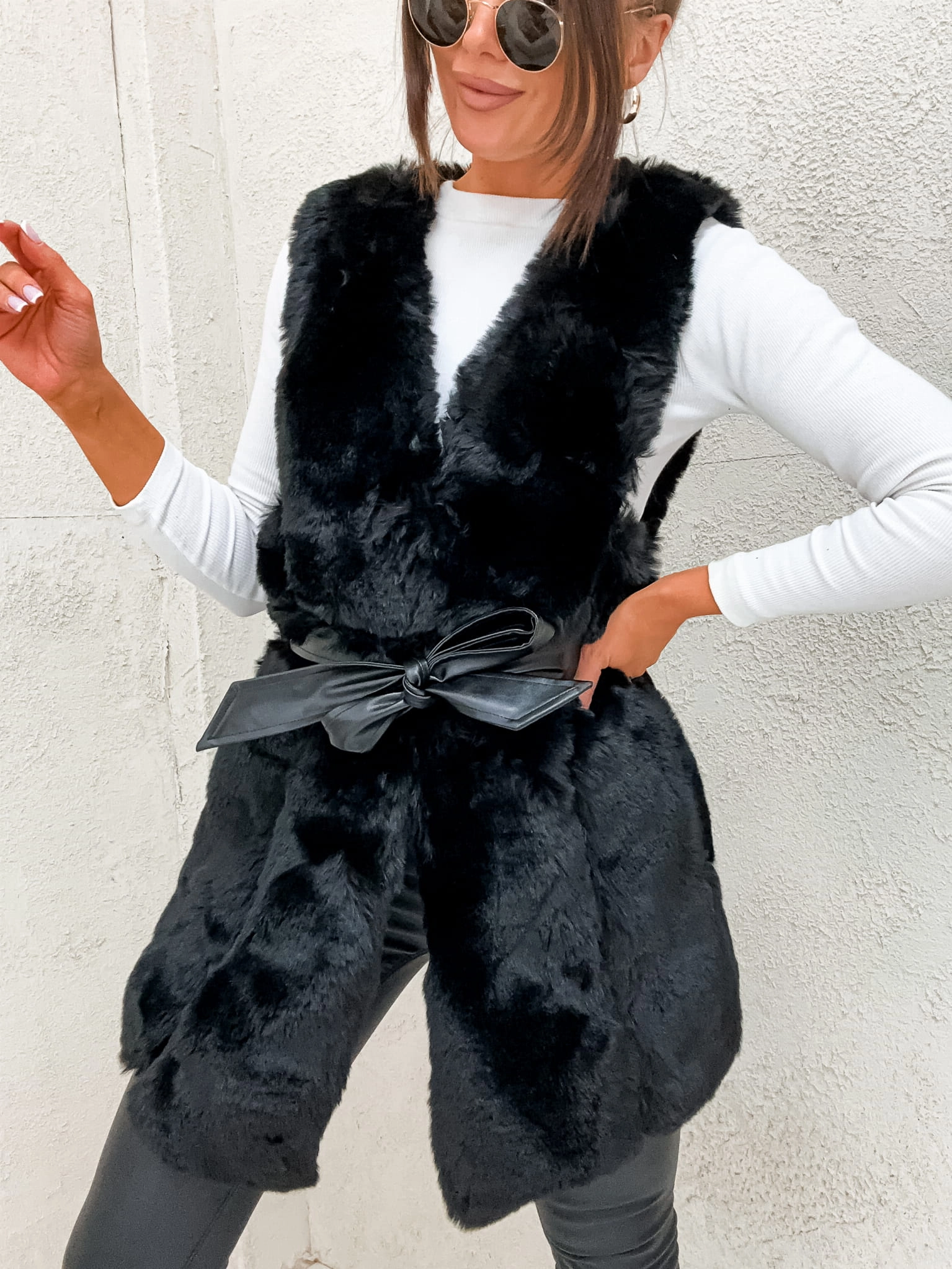 Elegancka Kamizelka Futrzana Damska – Stylowy Bezrękawnik z Paskiem