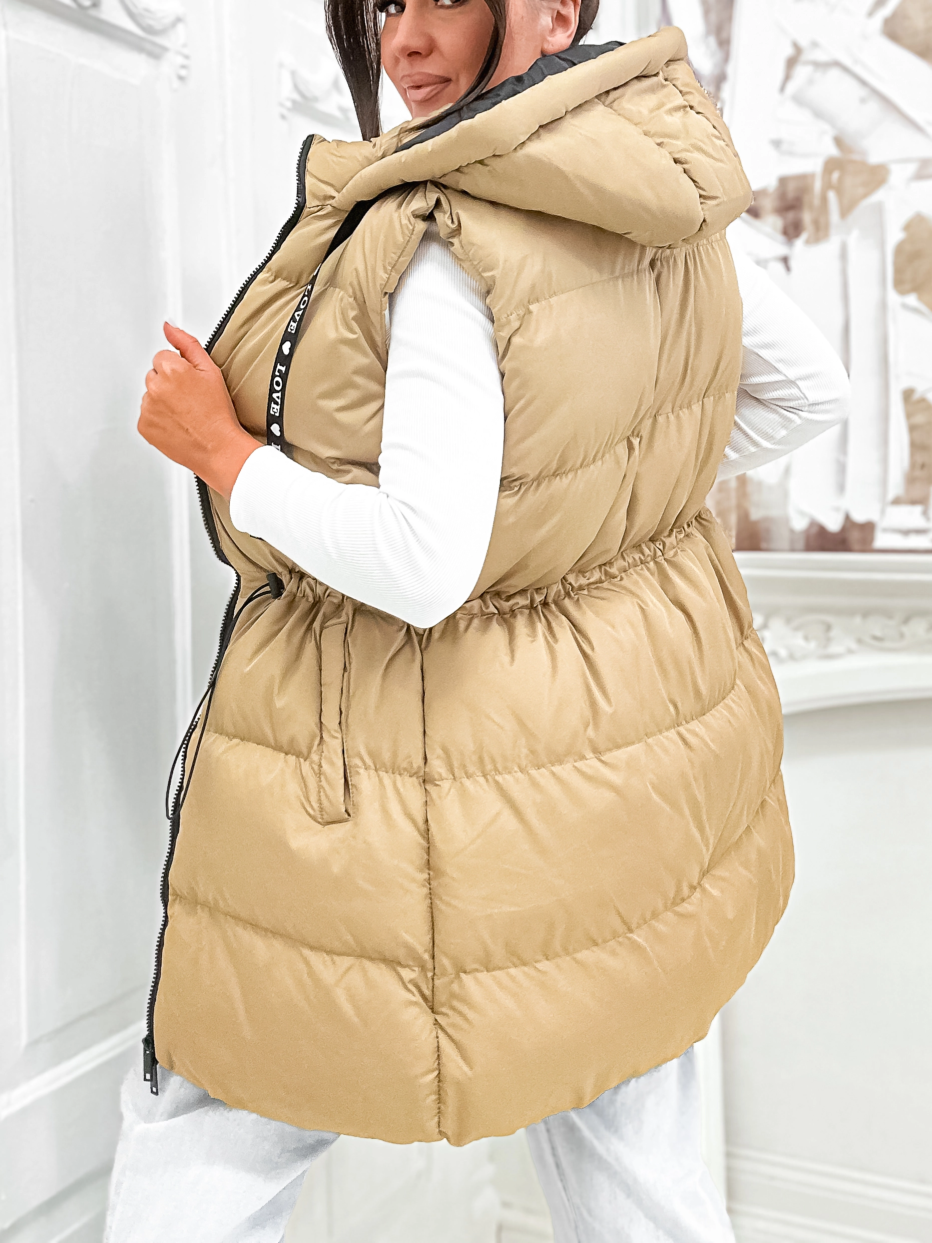 Bezrekawnik kamizelka pikowana damska wiosenna KAM6 - BEŻOWA