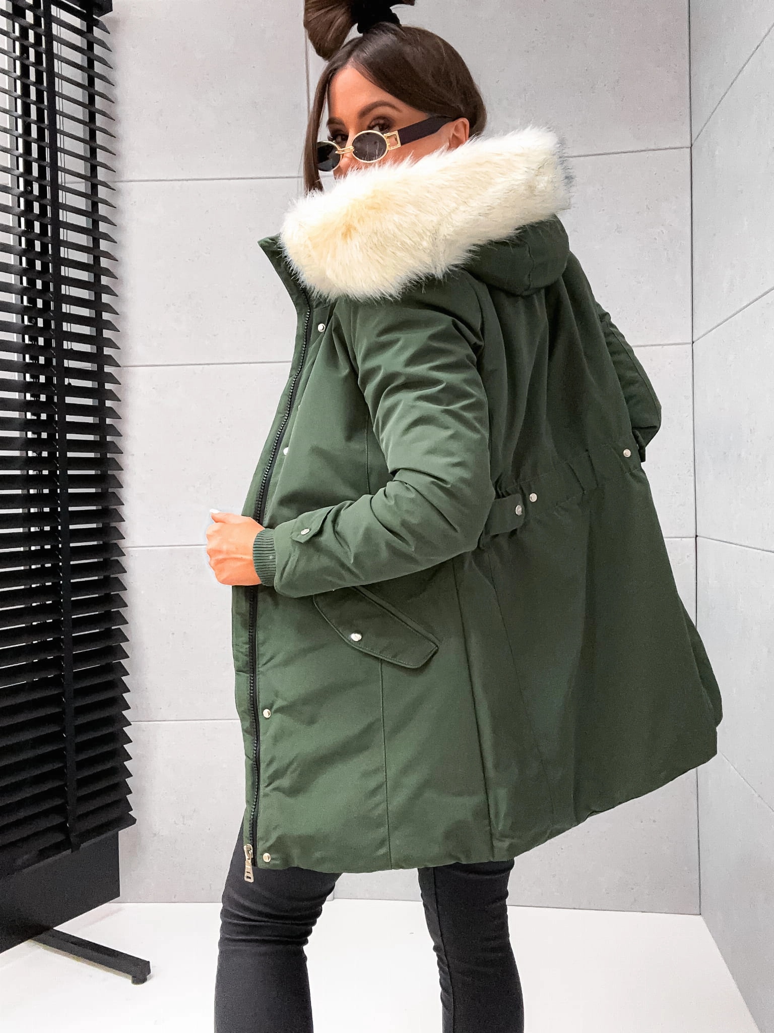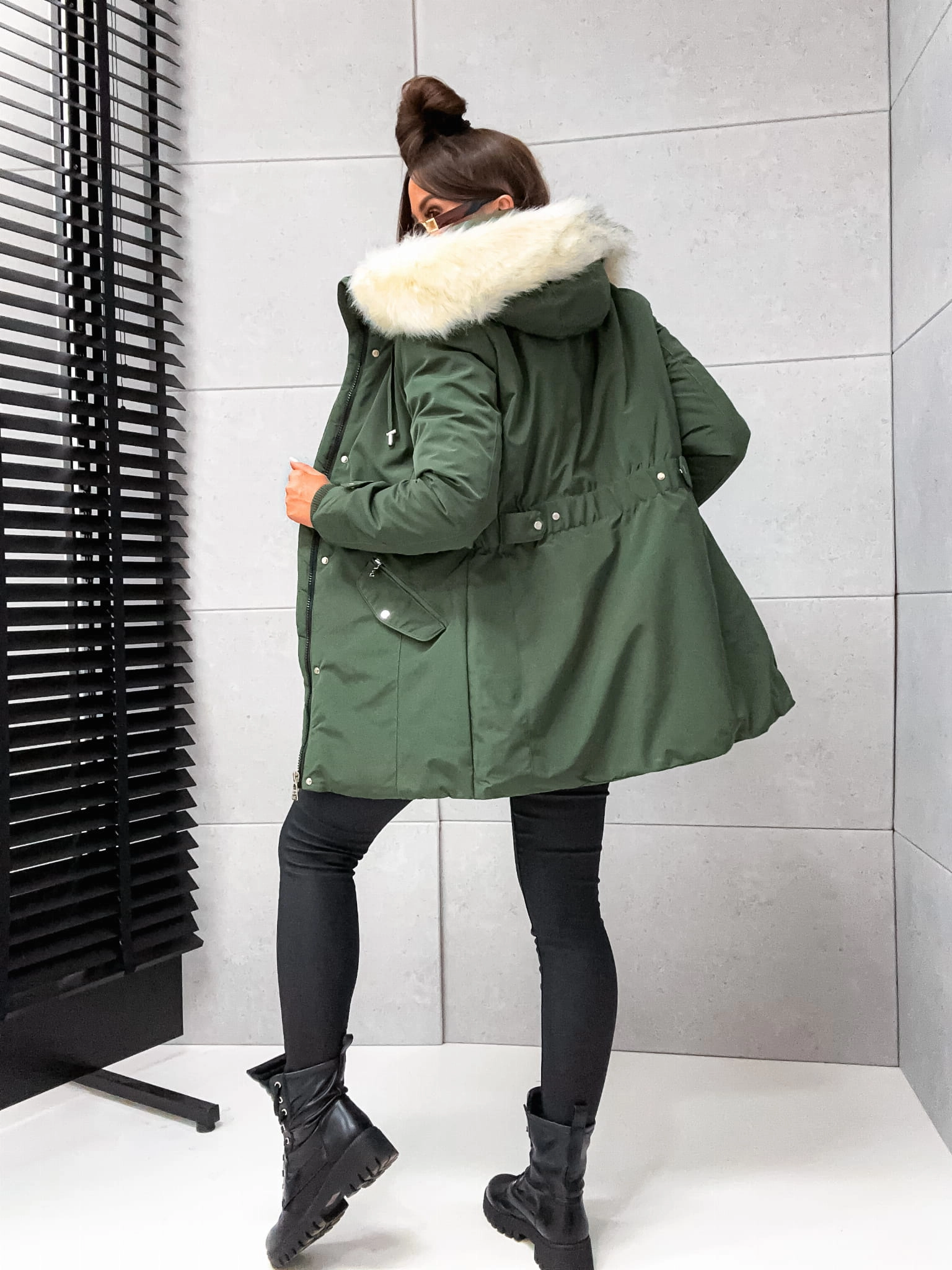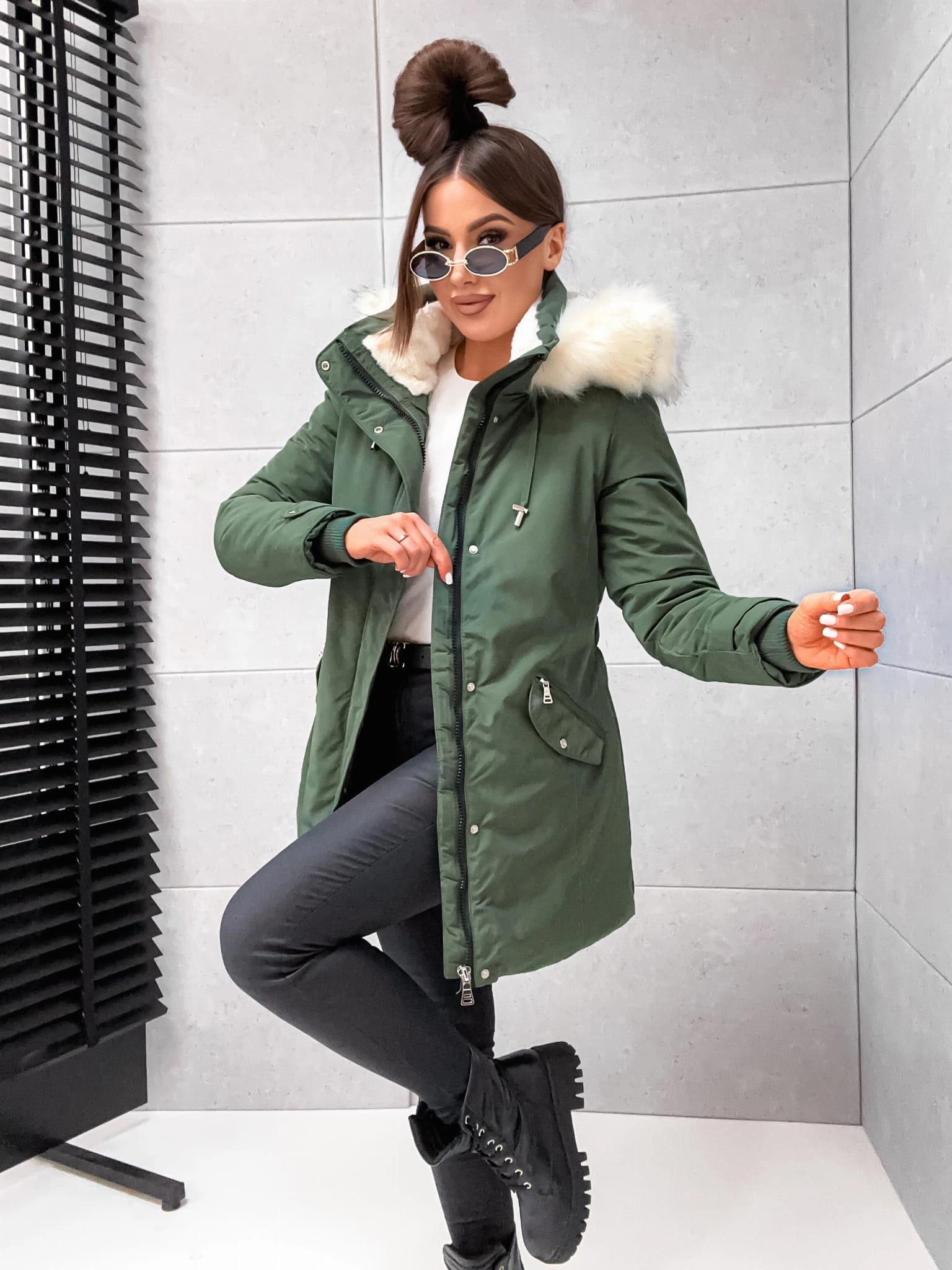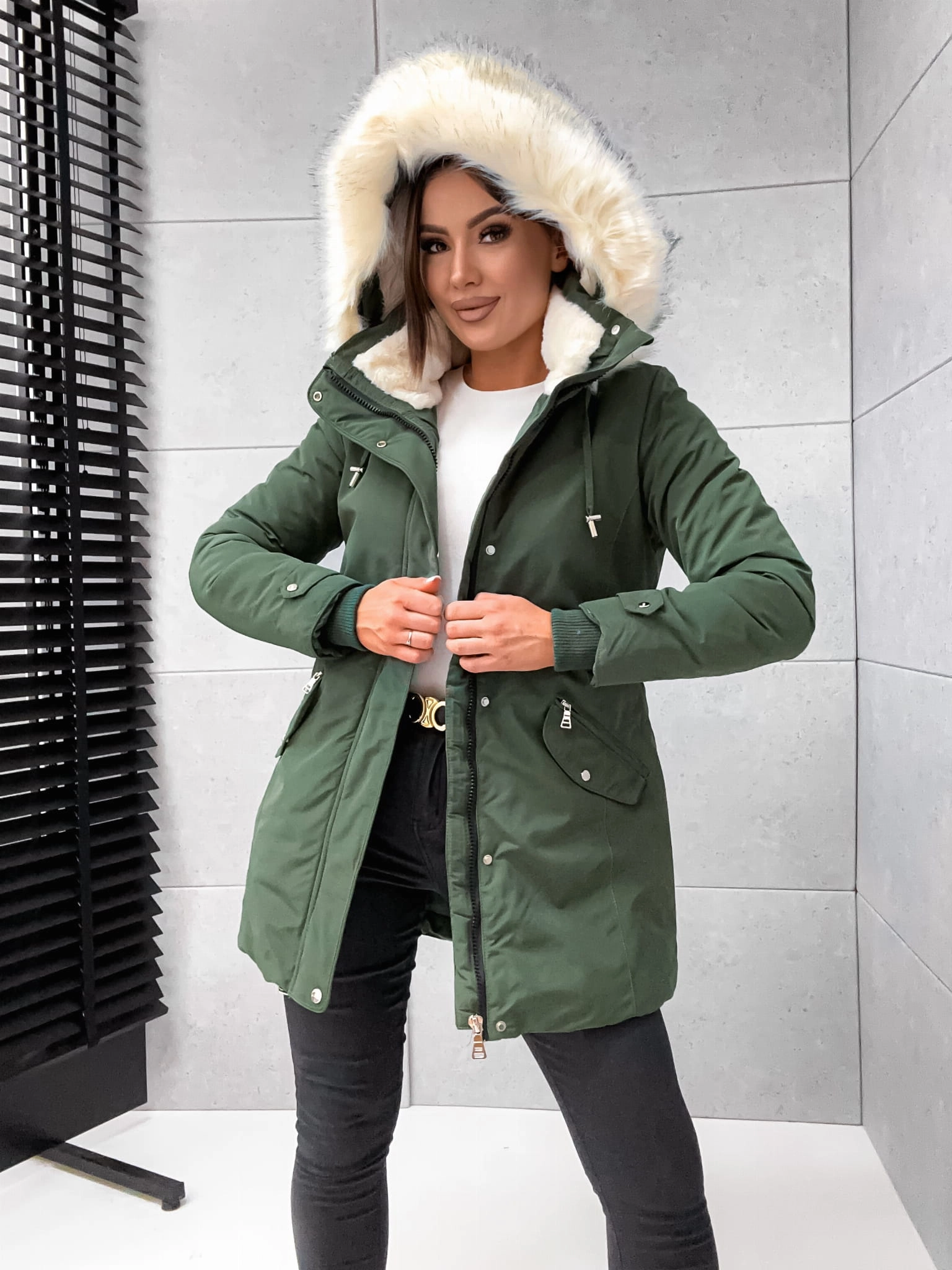 Ciepła zimowa kurtka damska PARKA z misiem W631 - ZIELONA