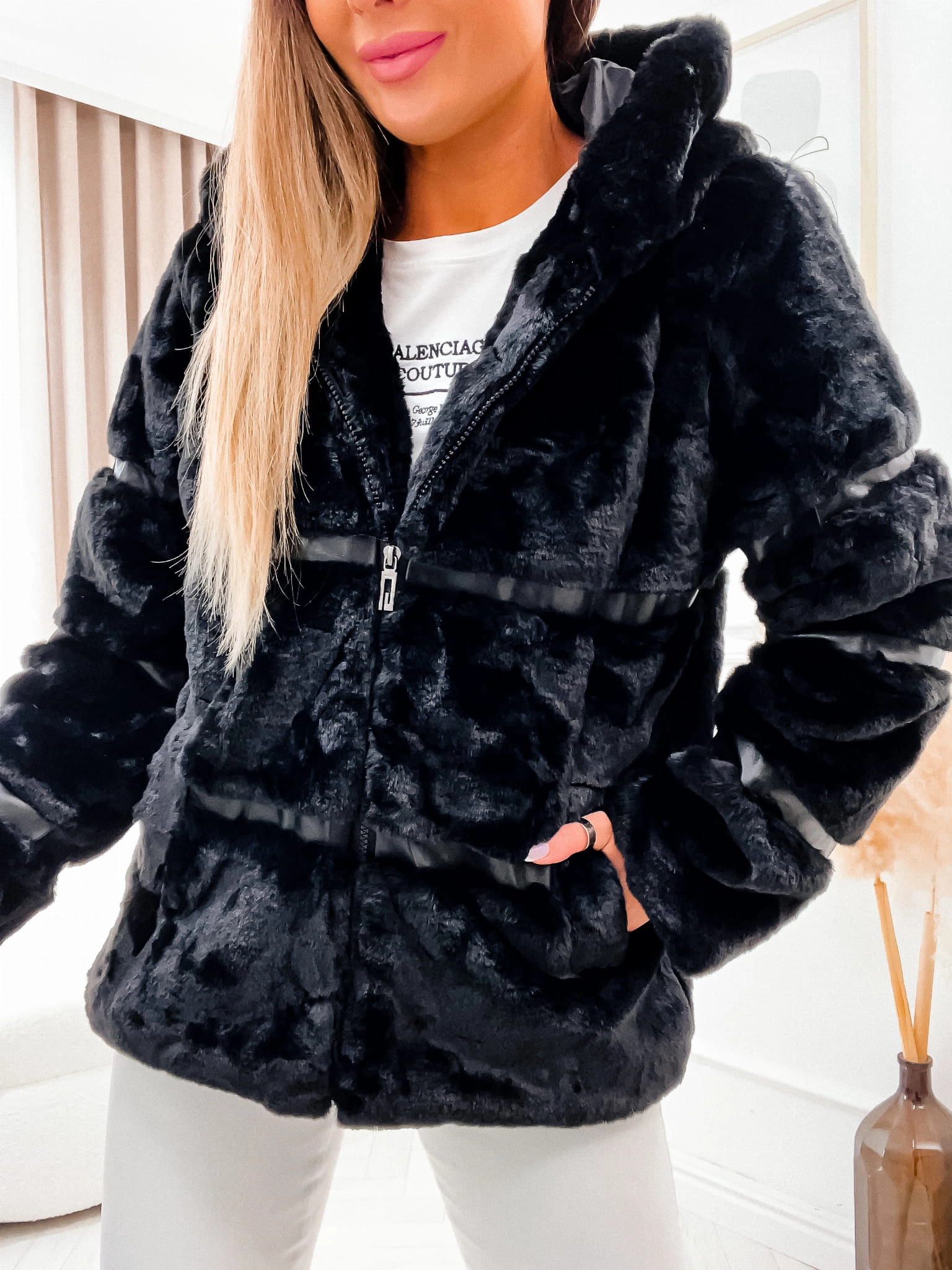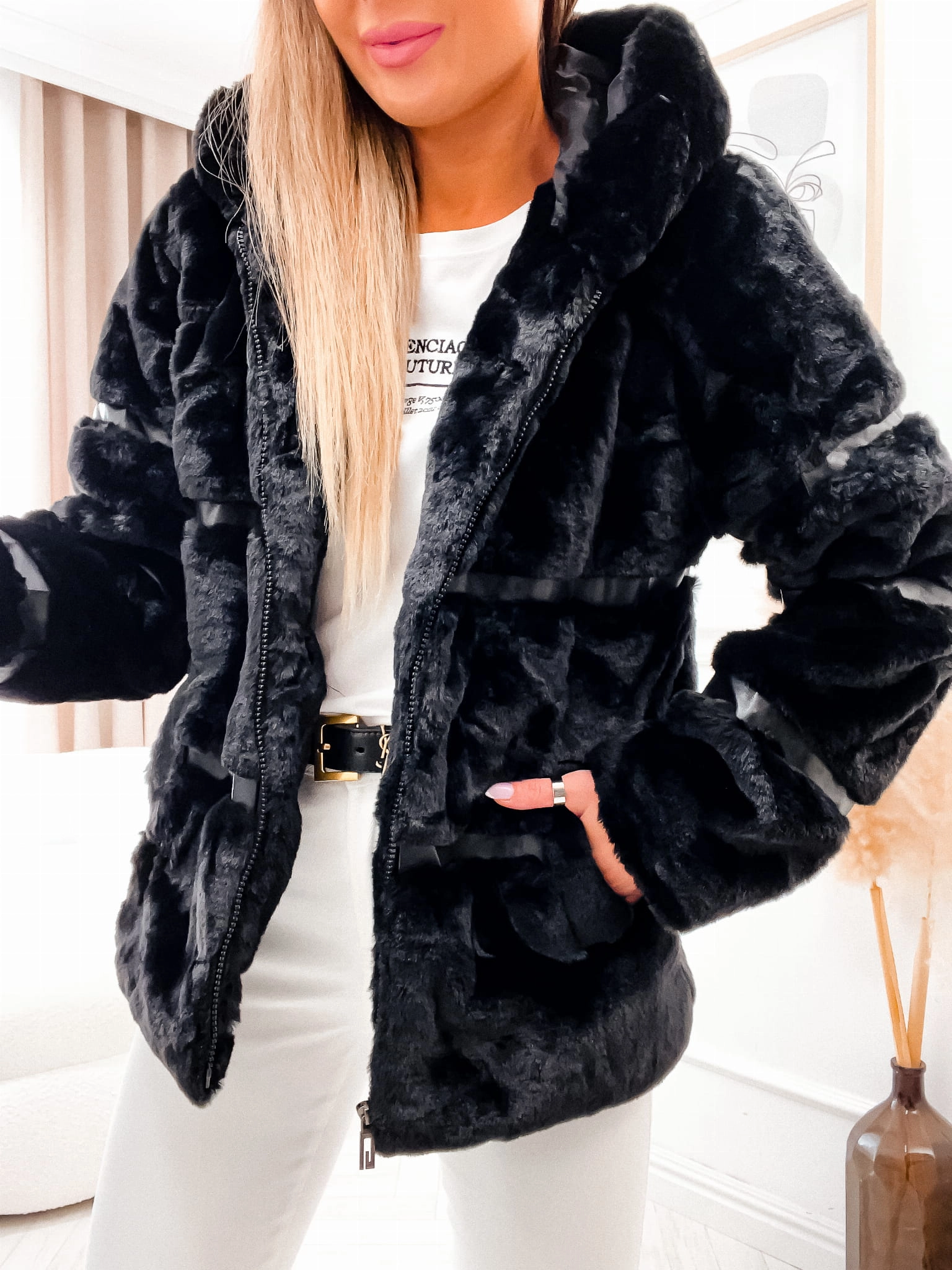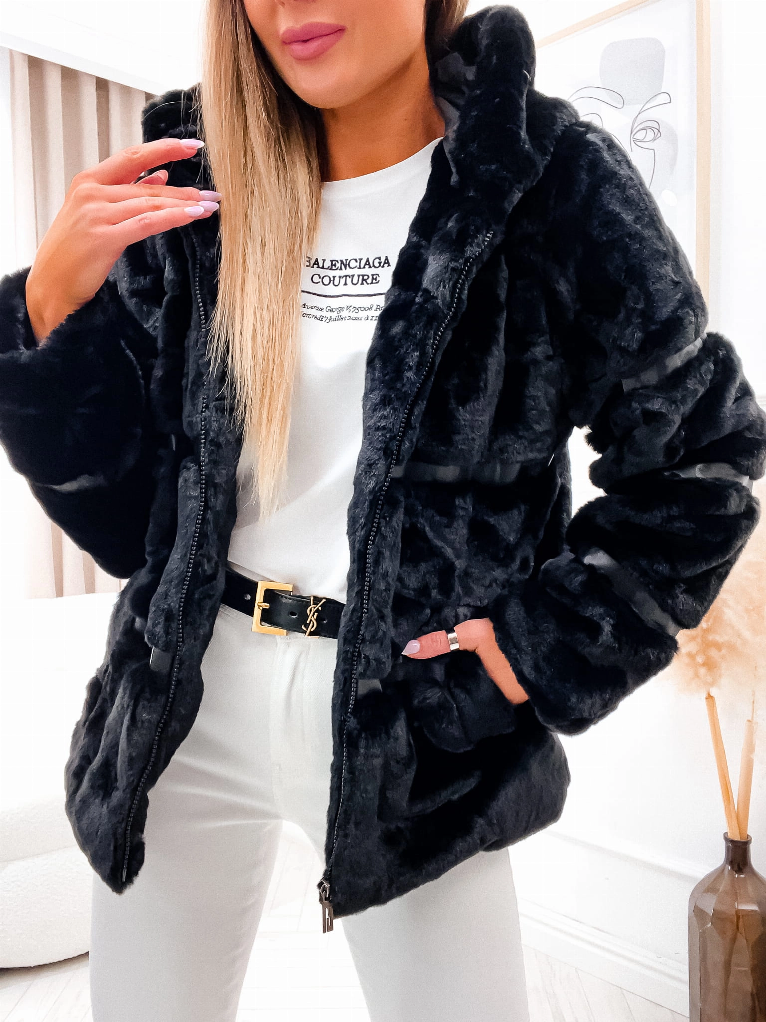 Ciepłe futro damskie kurtka damska futerkowa 8375 - czarne