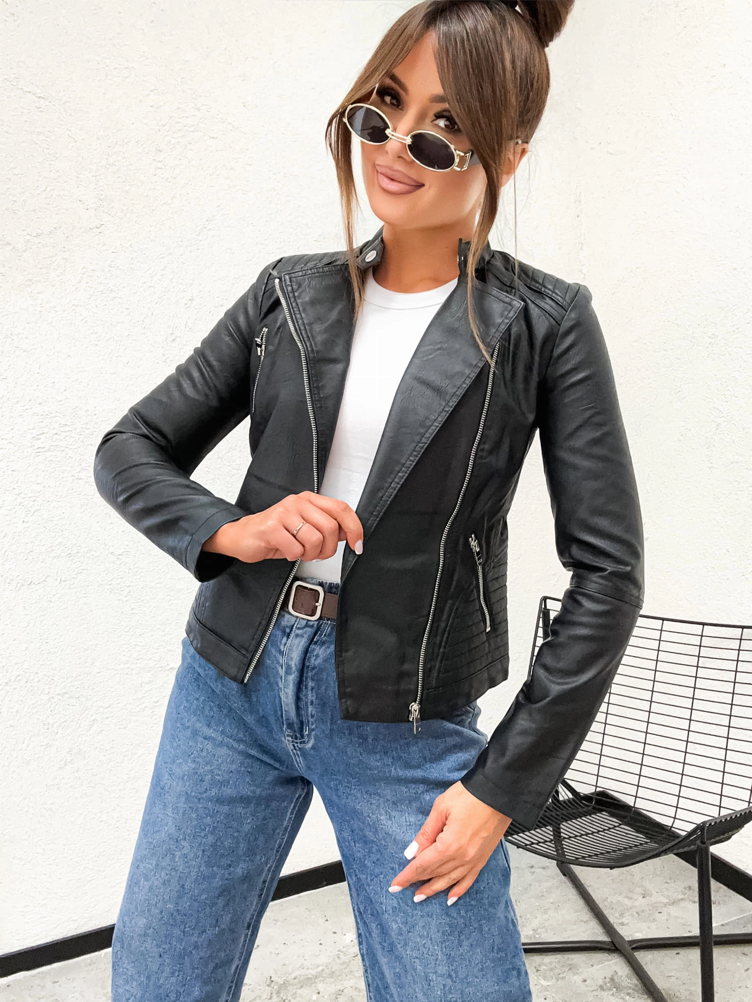 Jesienna kurtka damska eko skórzana RAMONESKA skóra 117 - CZERŃ