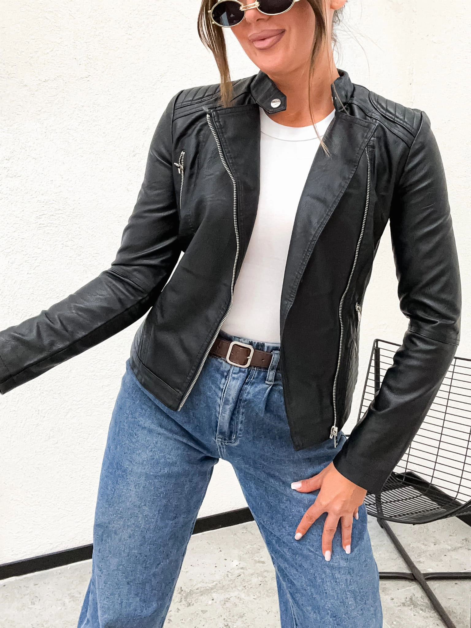 Uniwersalność: To idealna kurtka motocyklowa (biker), która pasuje zarówno do zwiewnych sukienek, jak i klasycznych jeansów czy bojówek.