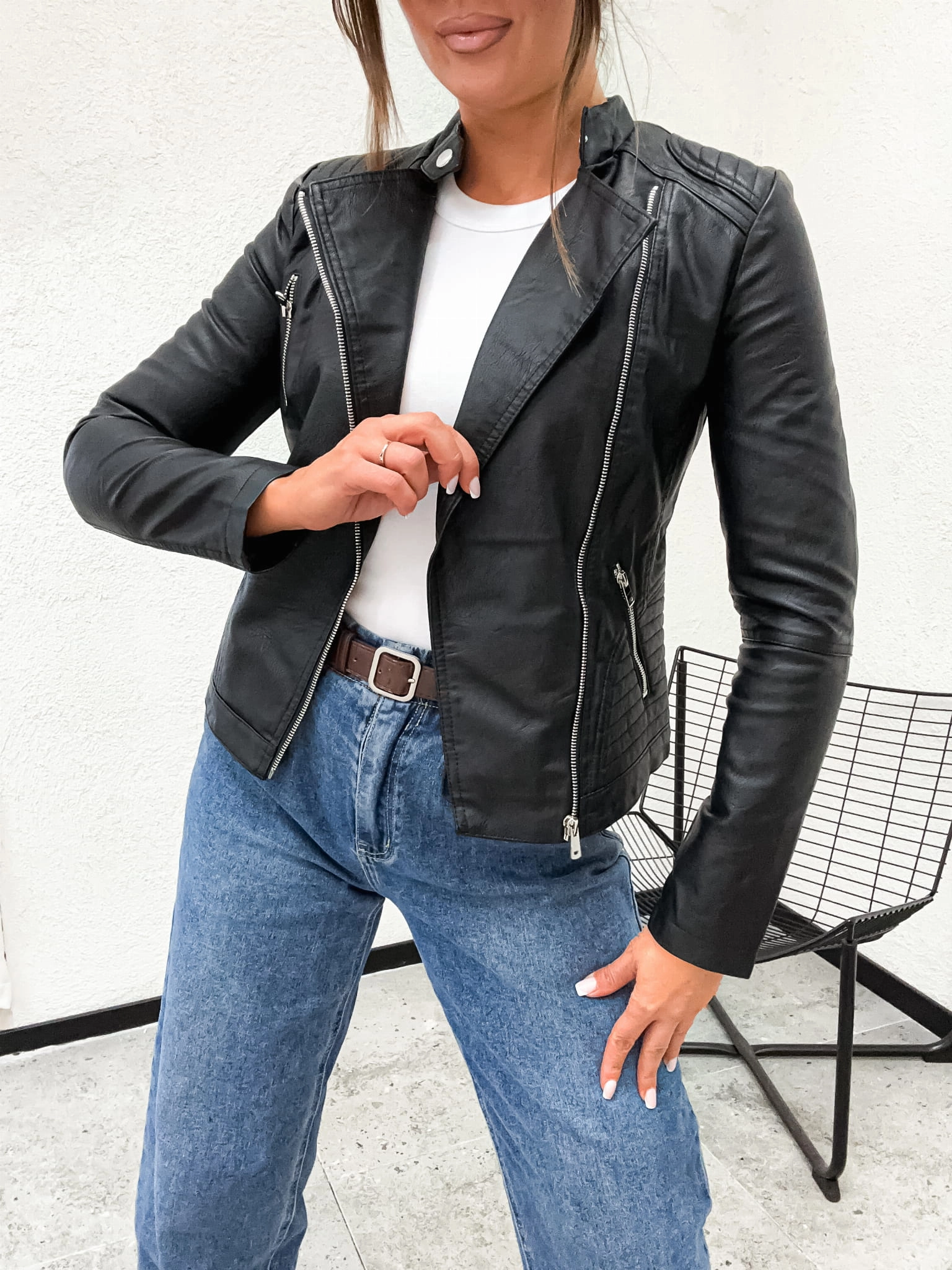 Ramoneska Damska Czarna z Ekoskóry – Klasyczna Kurtka Przejściowa