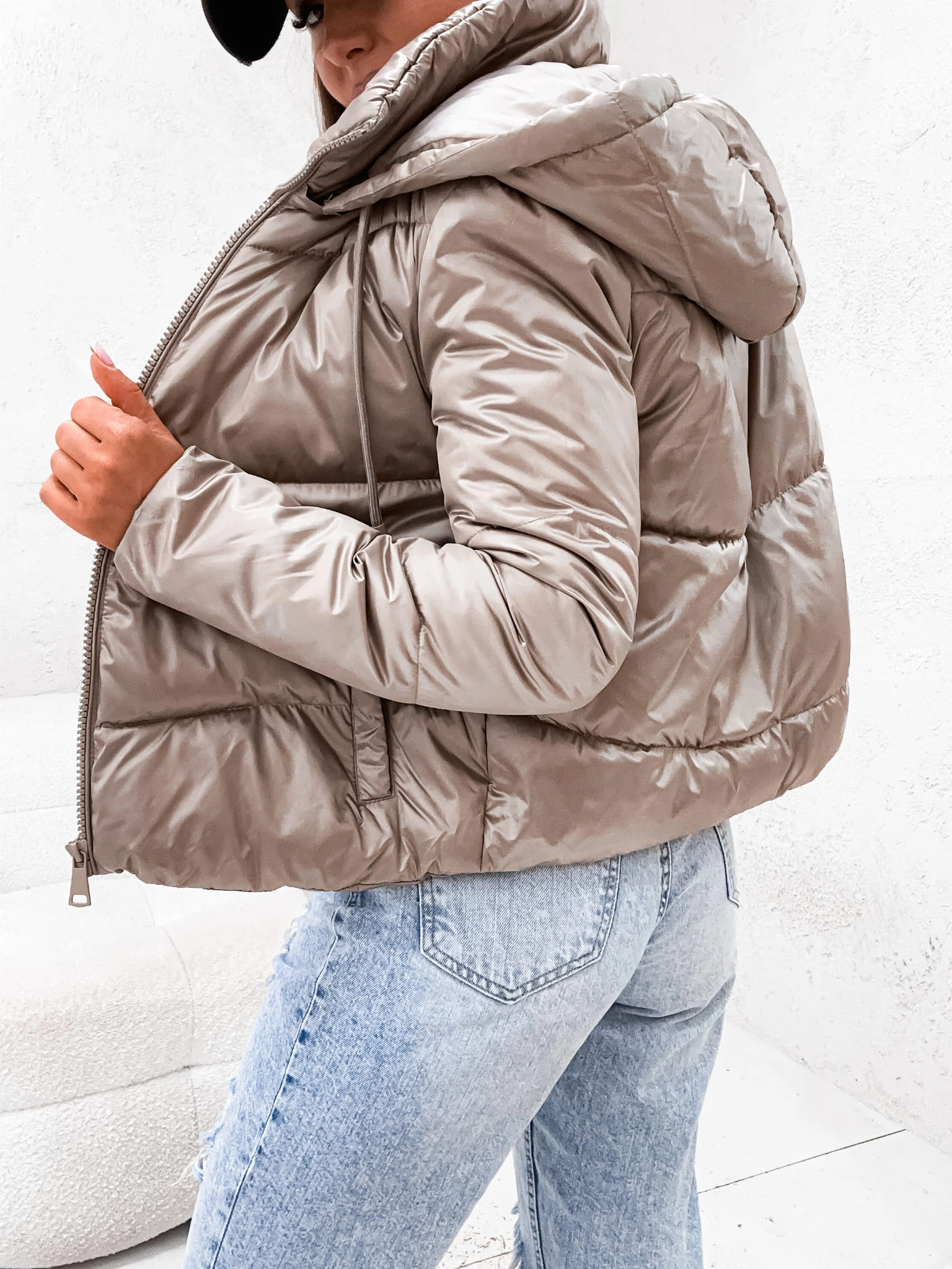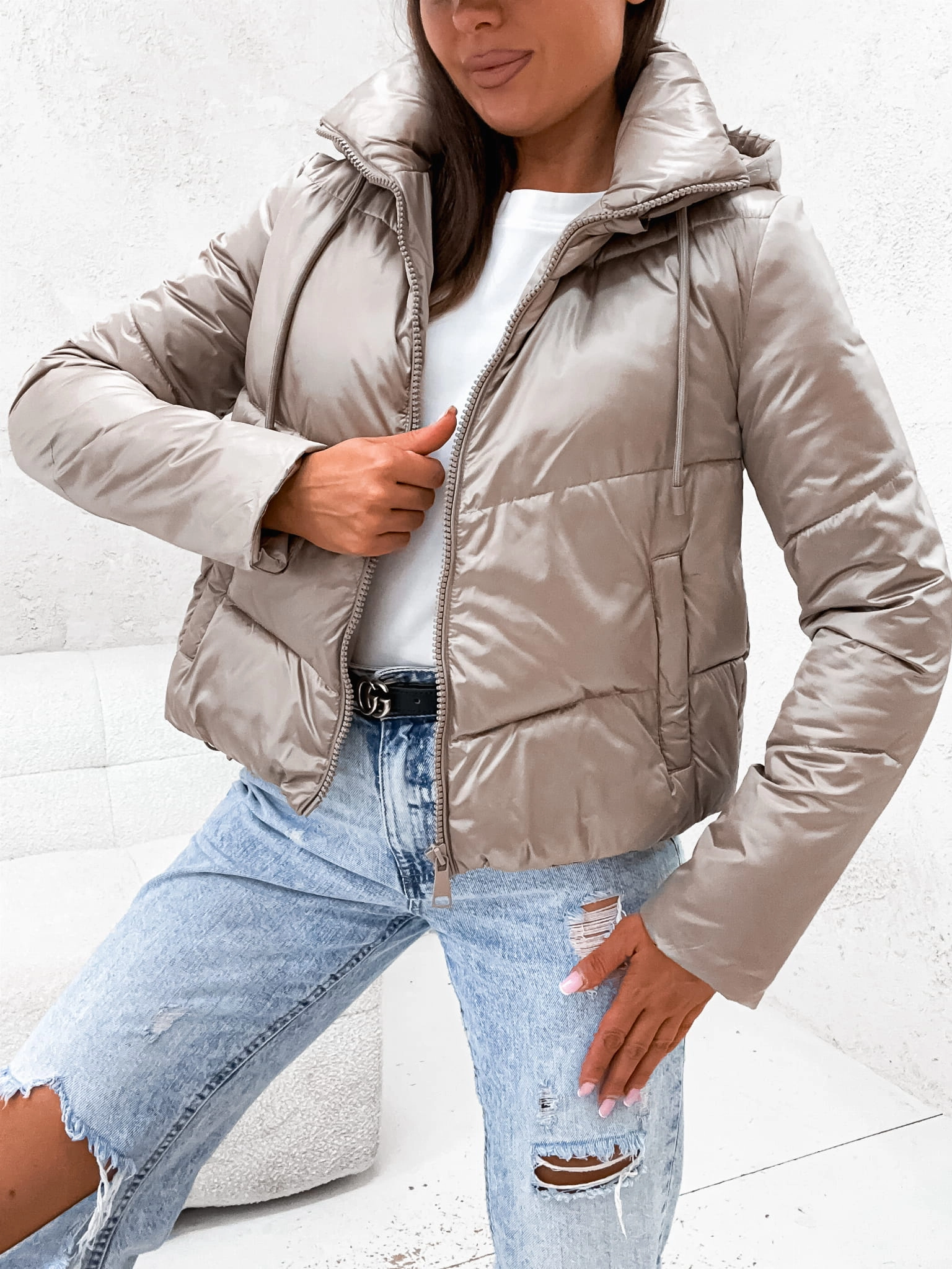 Jesienna kurtka damska pilotka bomber 8228 - beżowa