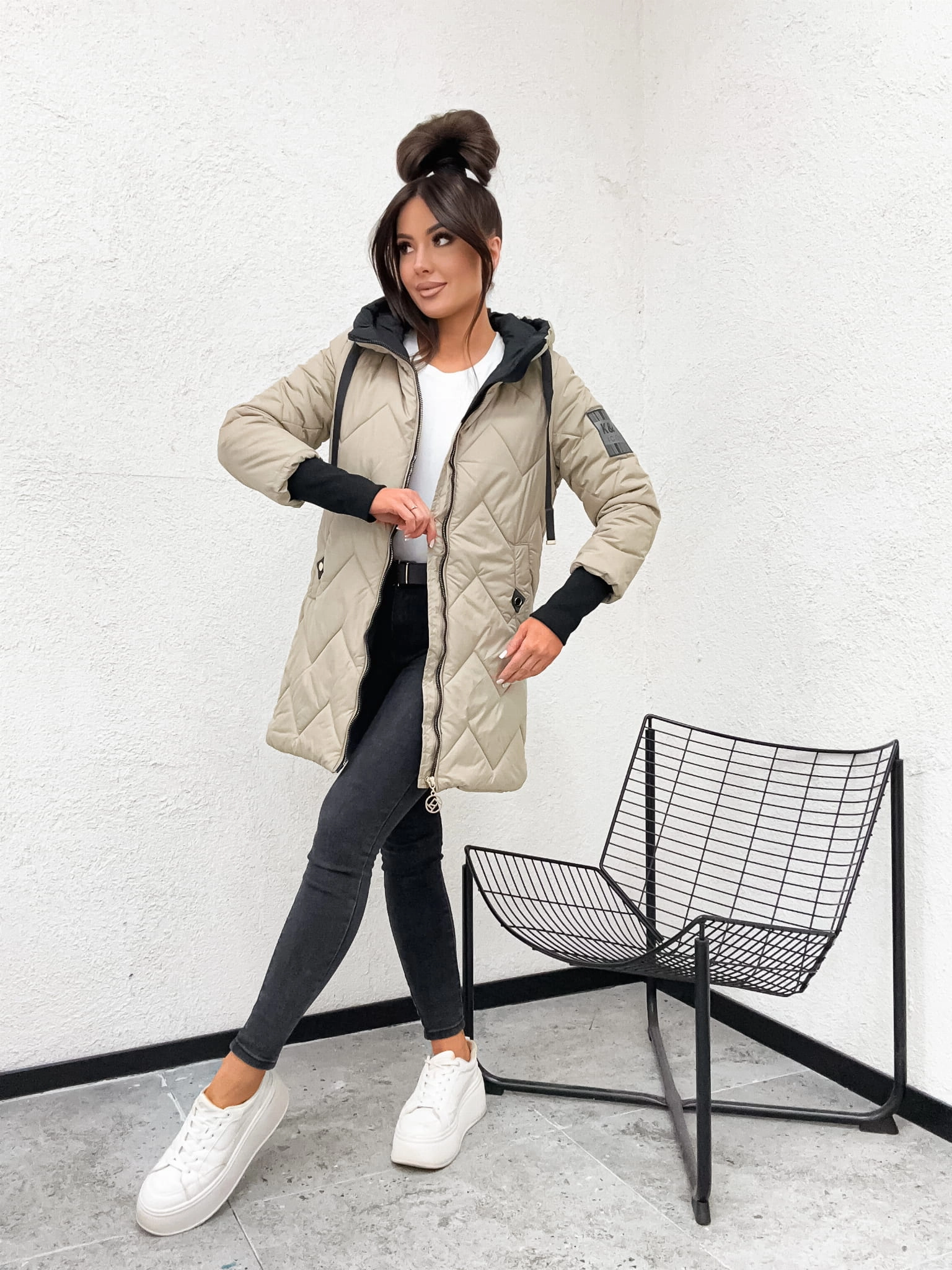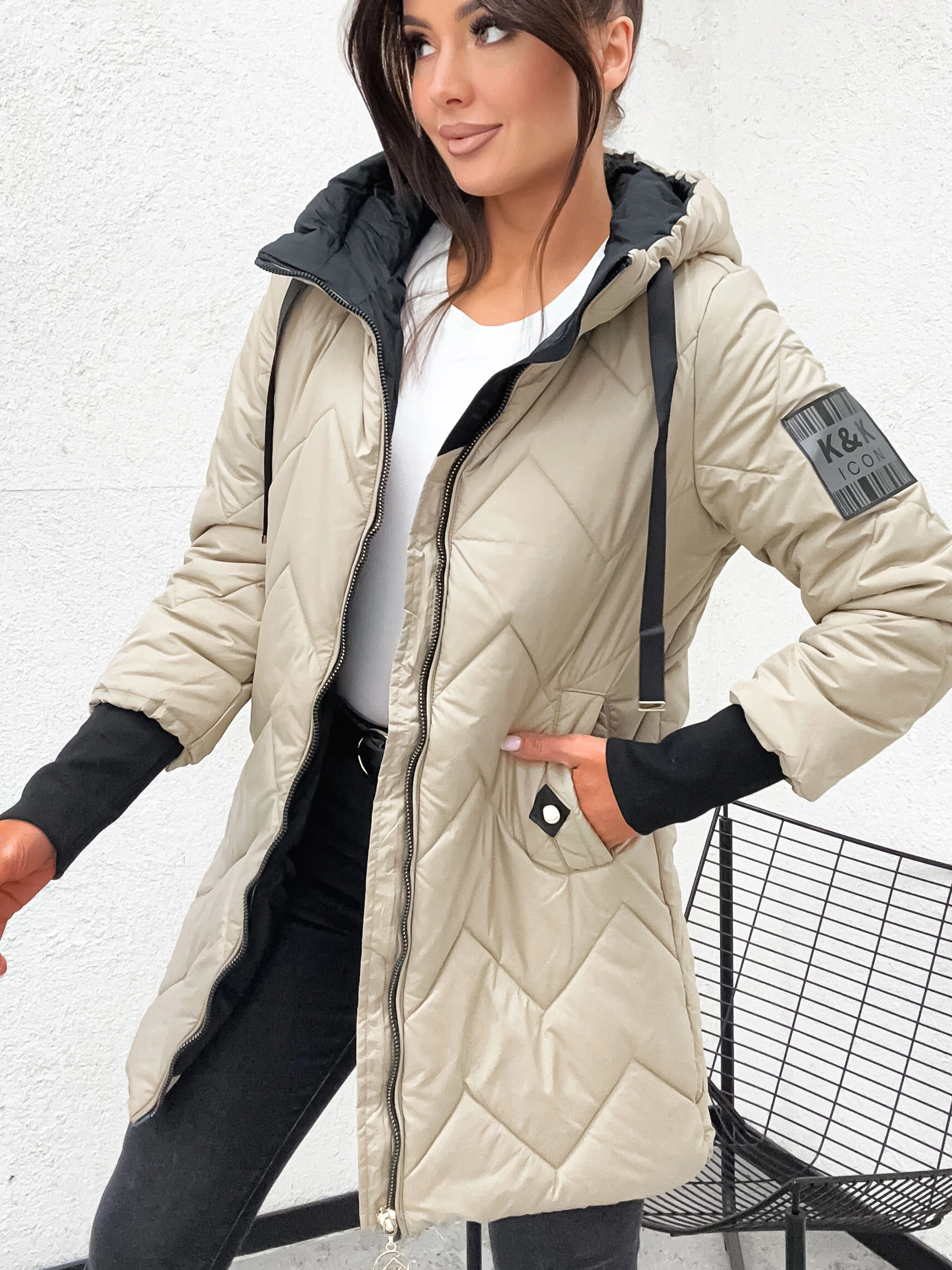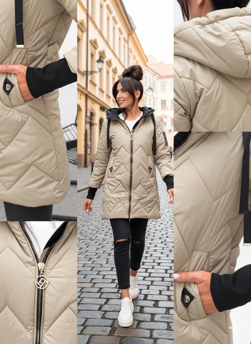 Beżowa Kurtka Damska Parka – Lekka Pikowana Kurtka Przejściowa Happy House