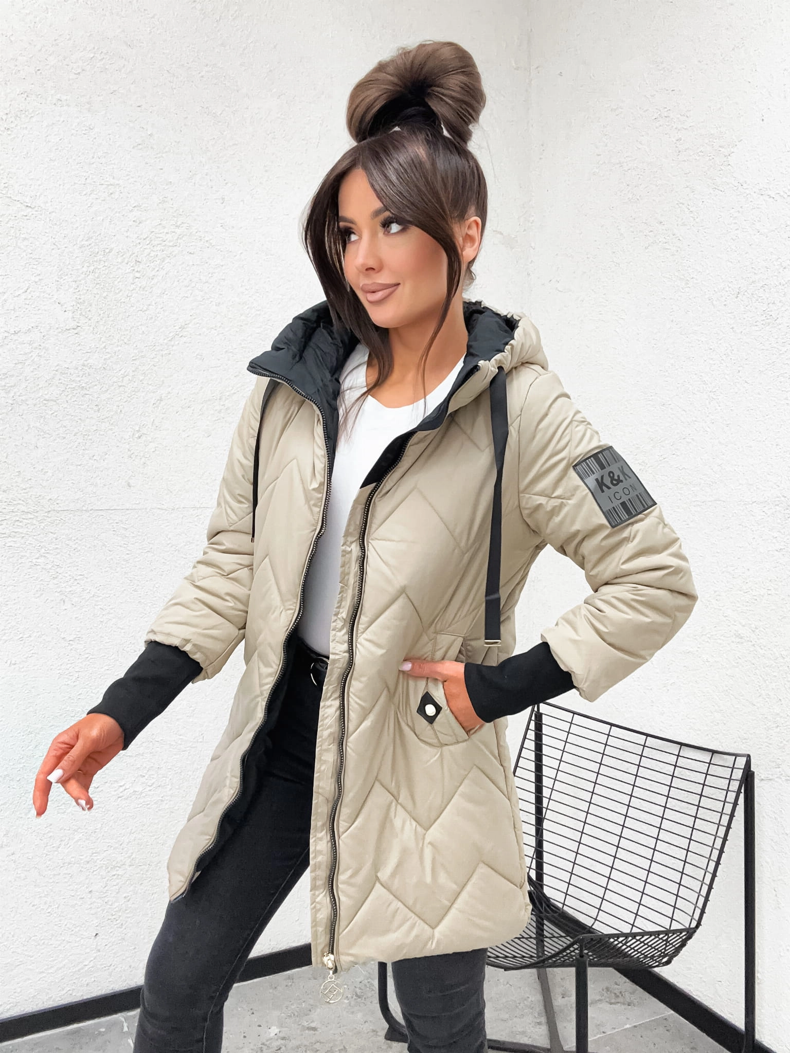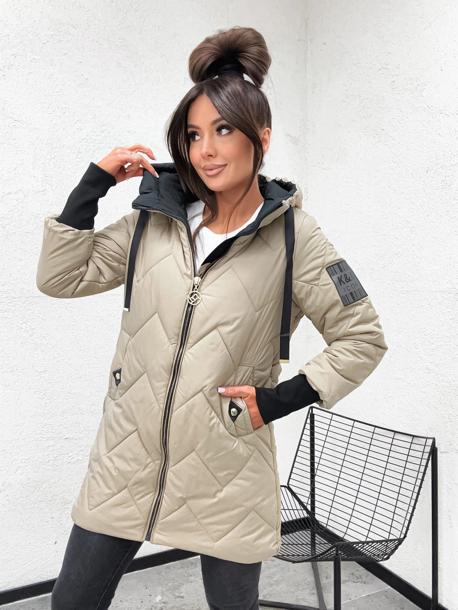 Kurtka wiosenna damska PARKA z kapturem 0806 - BEŻOWA