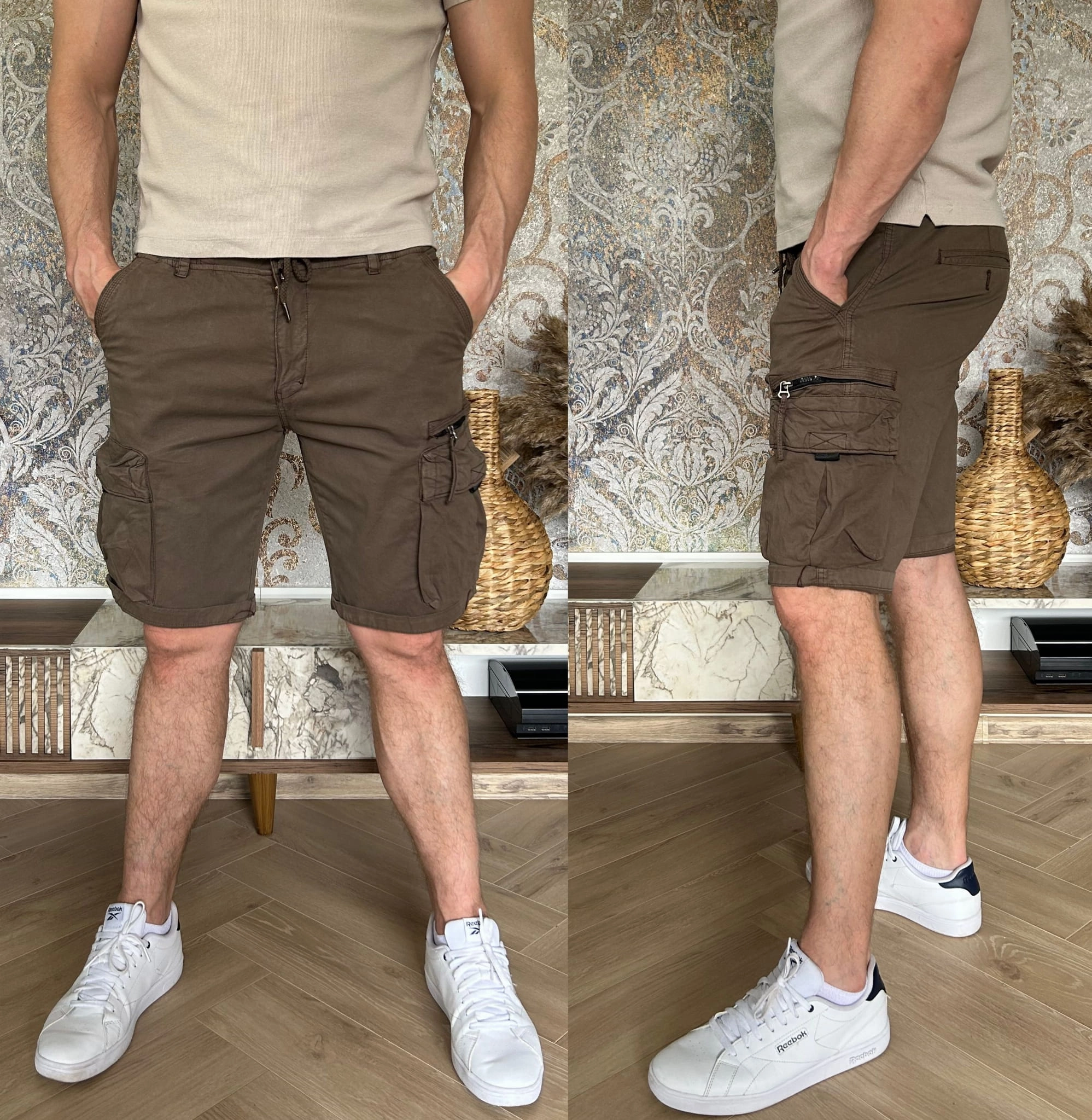 Meskie krotkie spodenki bojowki na gumie szorty 5790 - BRĄZOWY