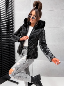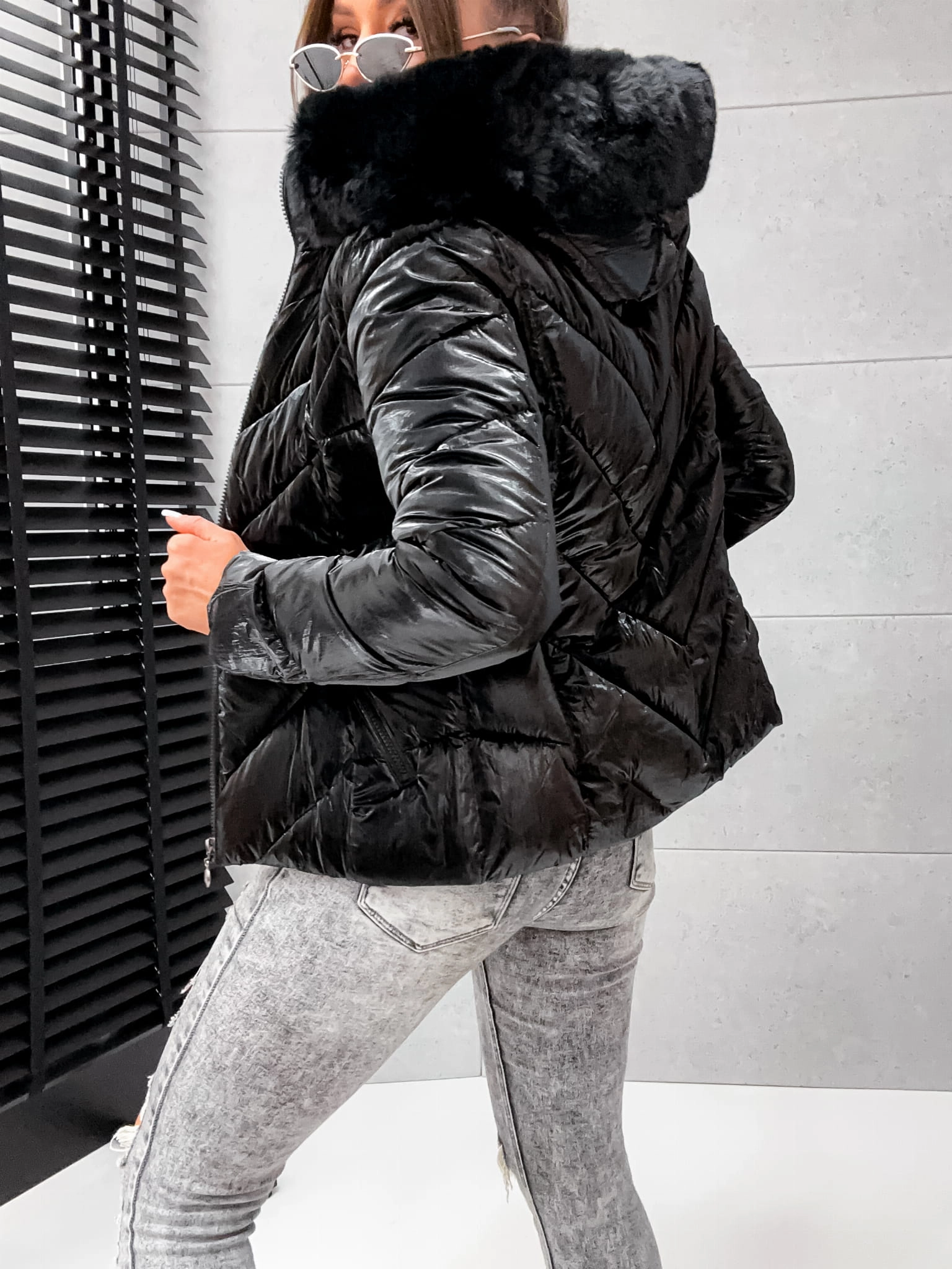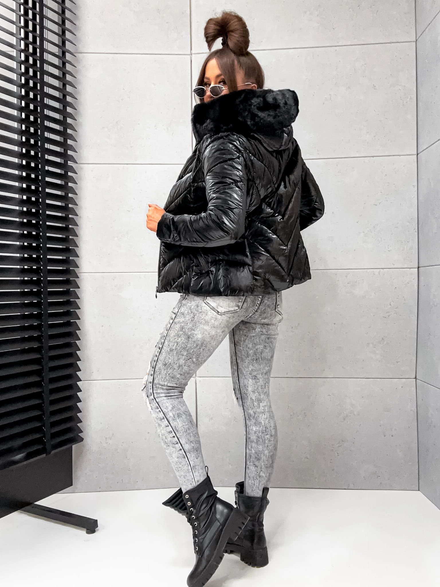 Ocieplana kurtka damska KLASYCZNA z kapturem 6012 - CZARNA