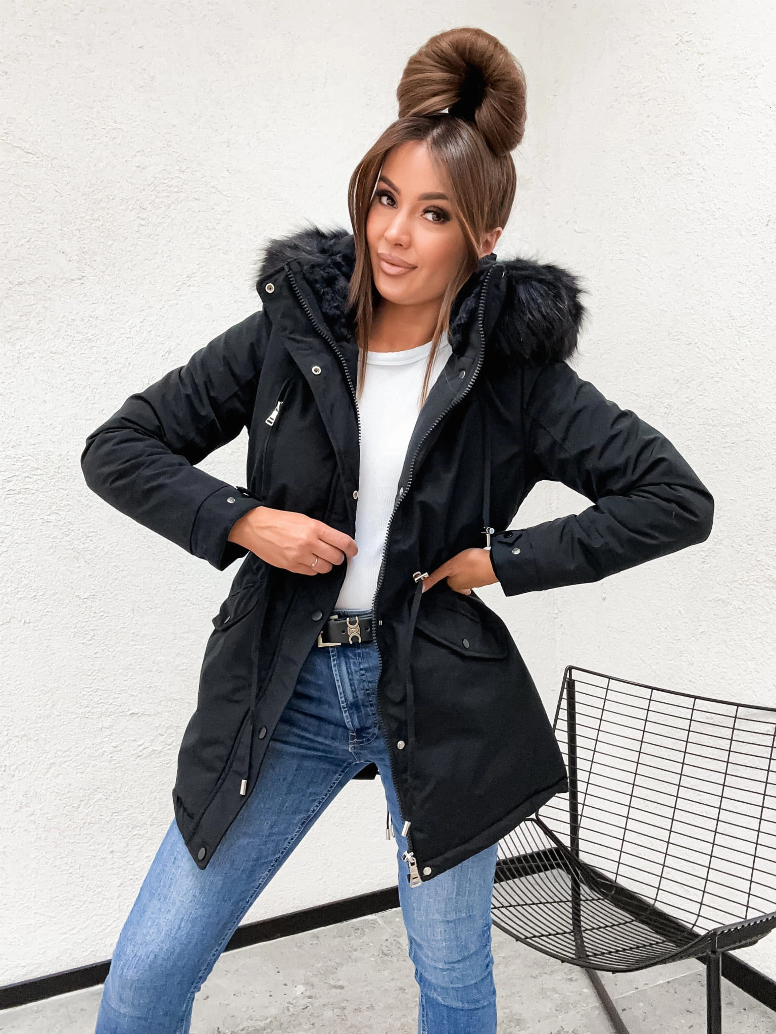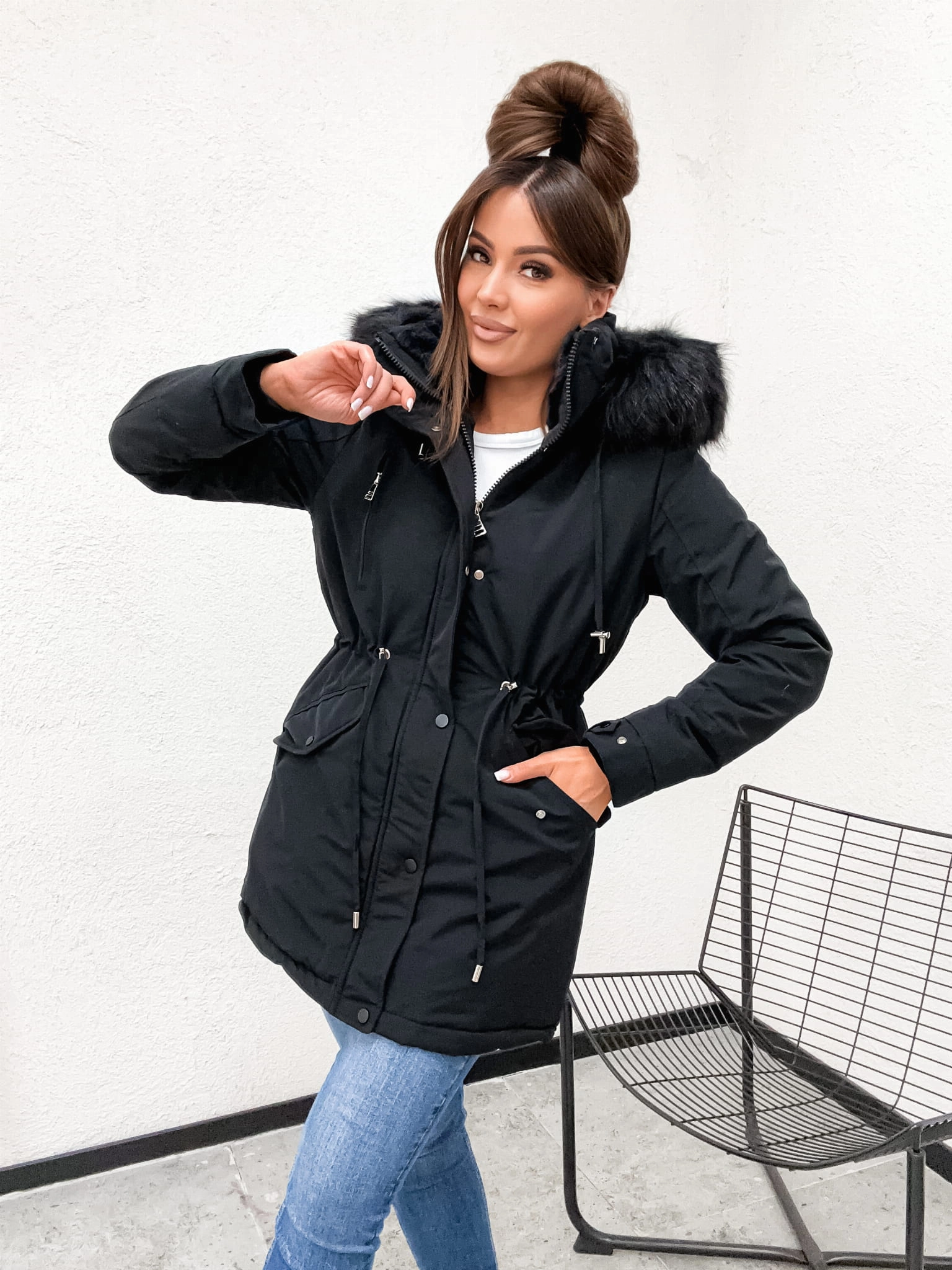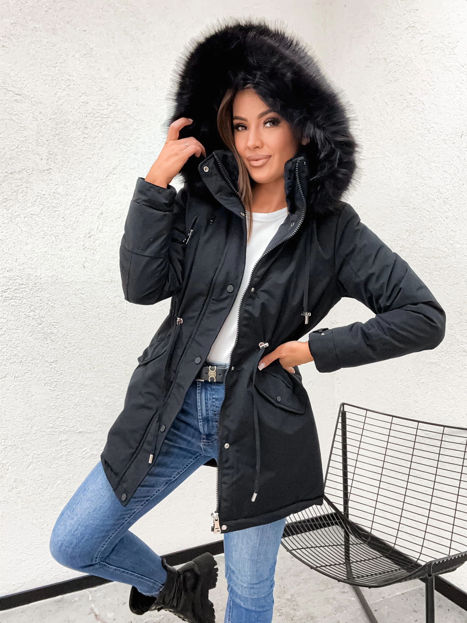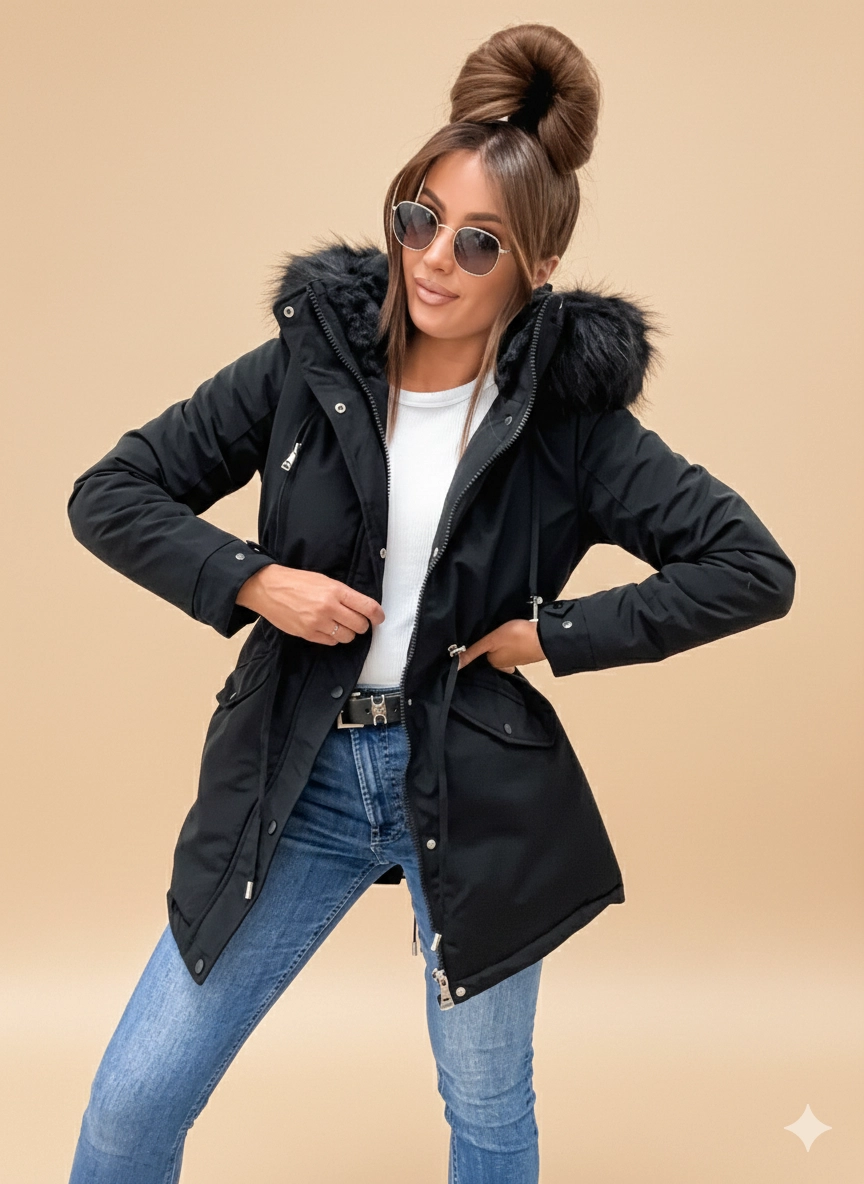Ciepła Kurtka Zimowa Damska Parka z Futerkiem – Model na Misiu