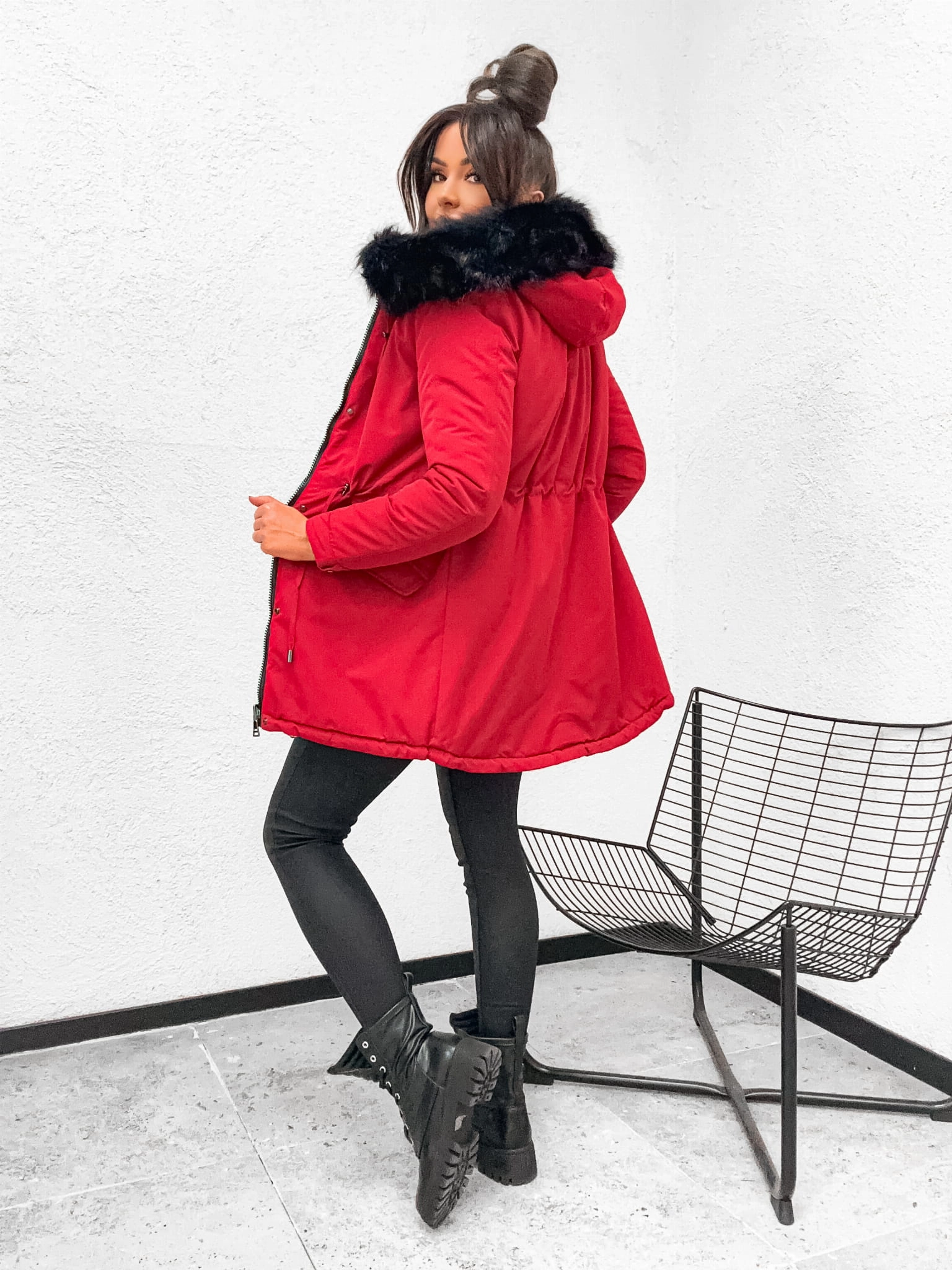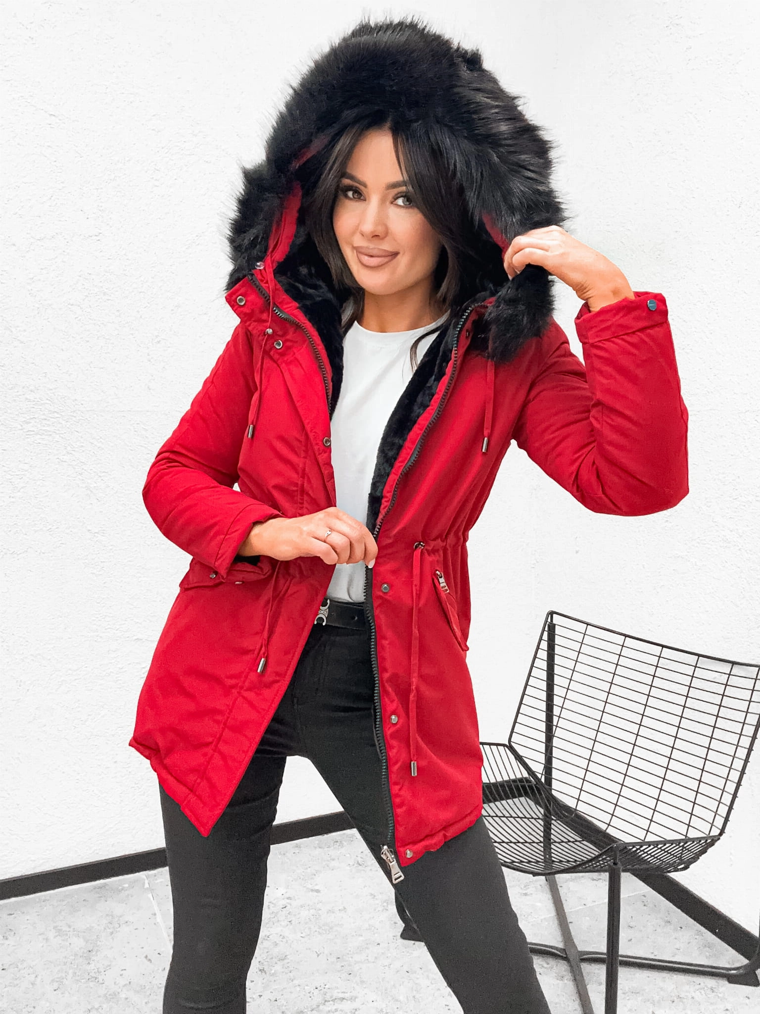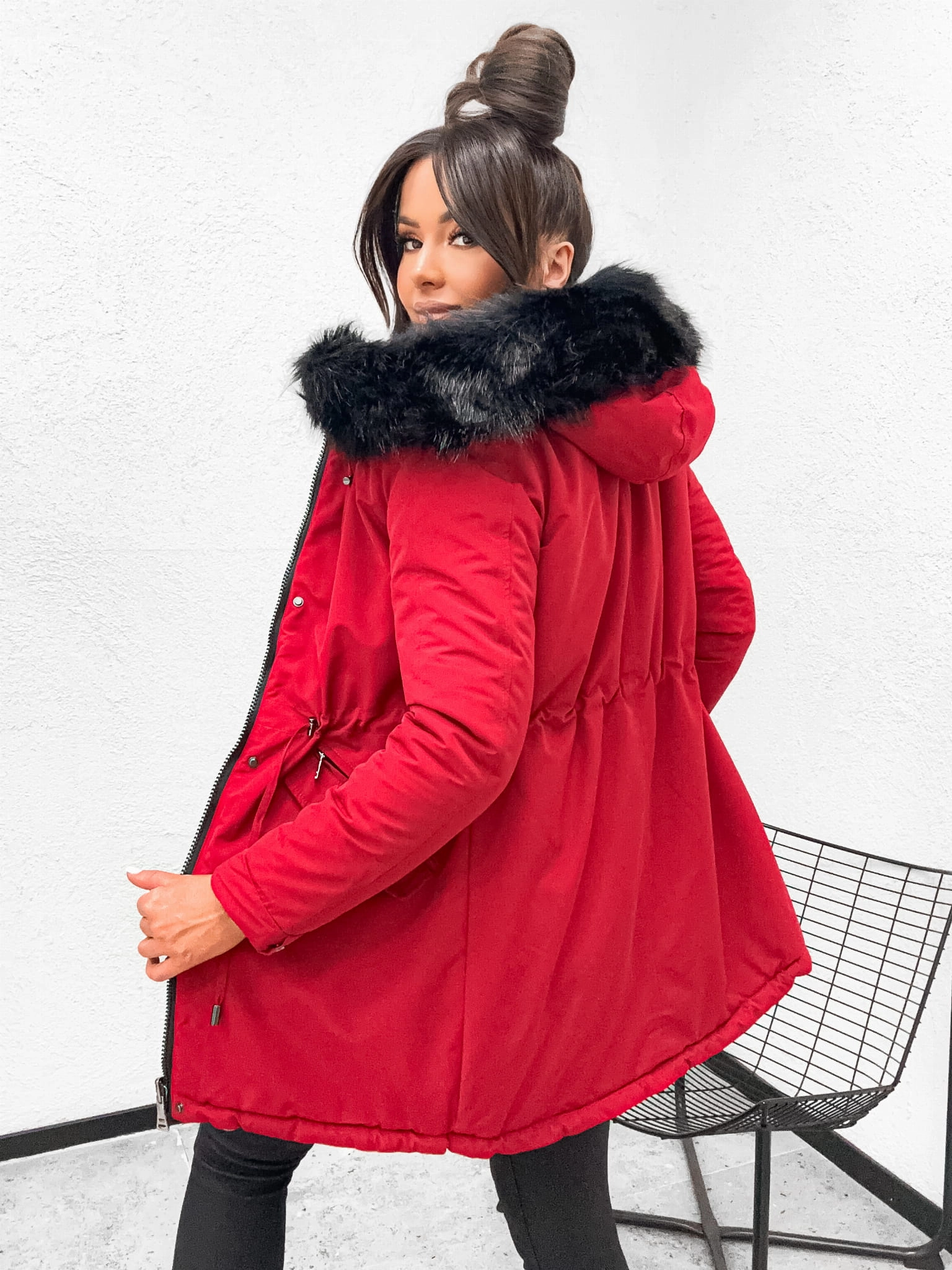 Parka zimowa damska na misiu (Teddy) z kapturem – Ciepła kurtka W641 - czerwona