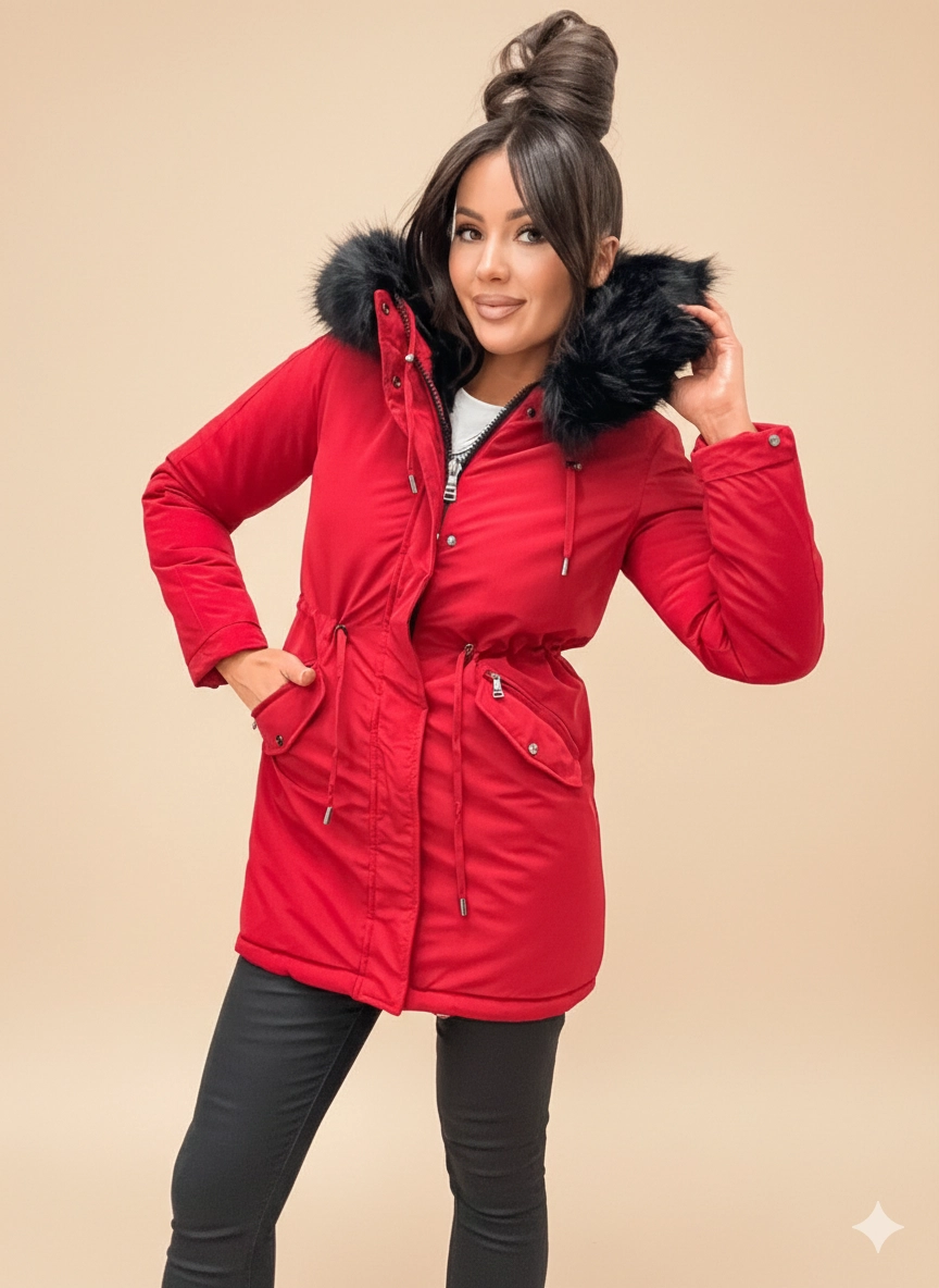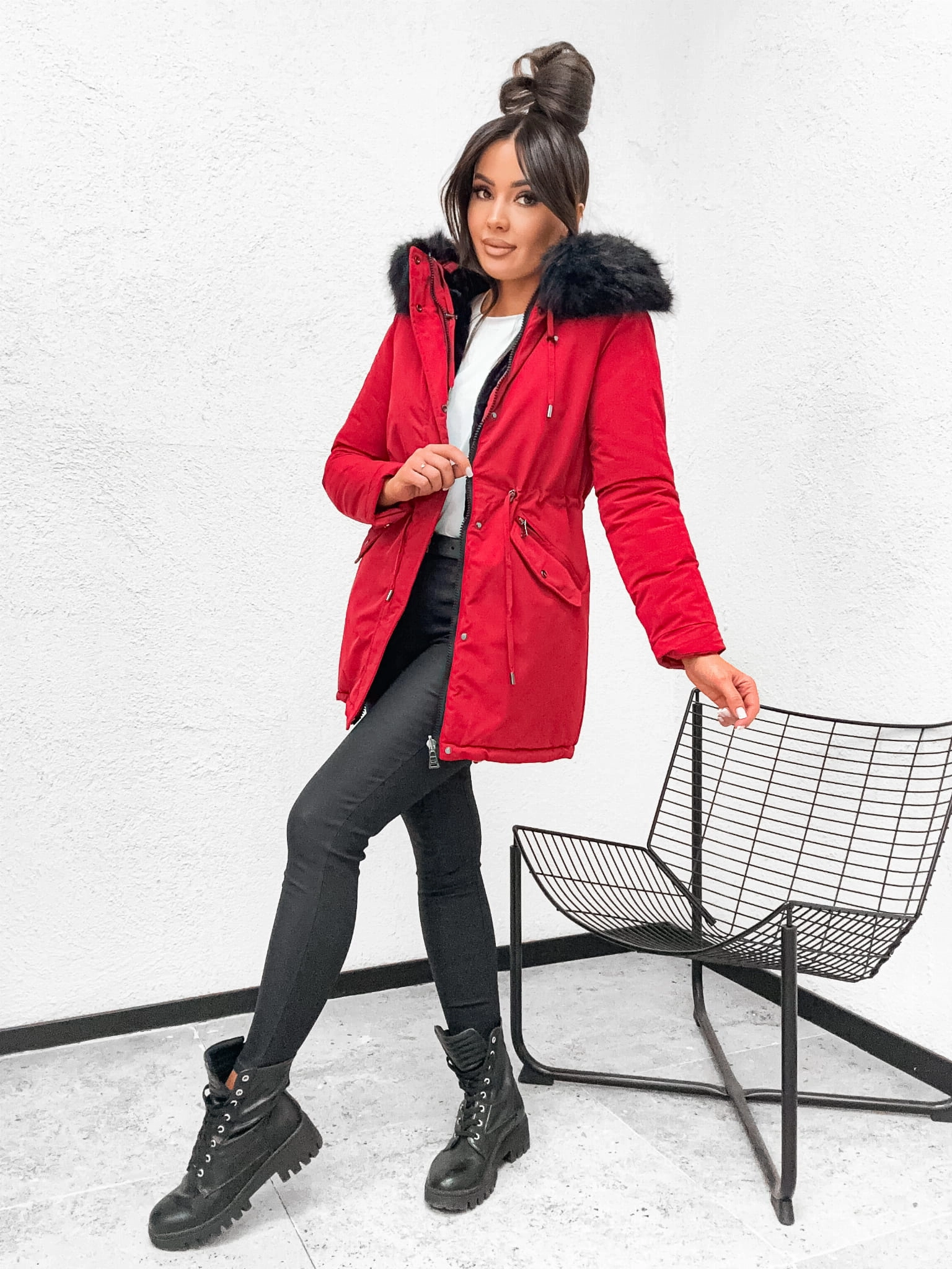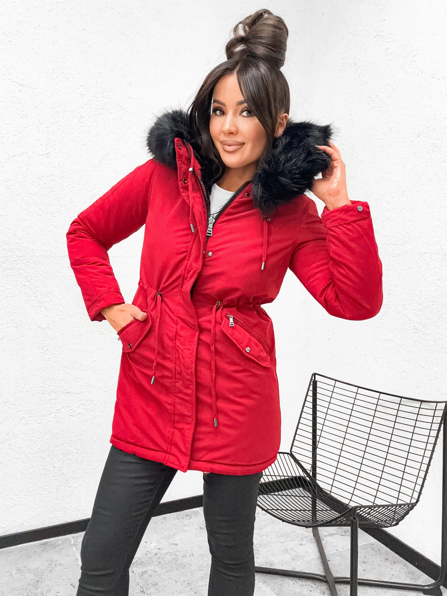 Parka zimowa damska na misiu (Teddy) z kapturem – Ciepła kurtka W641 - czerwona