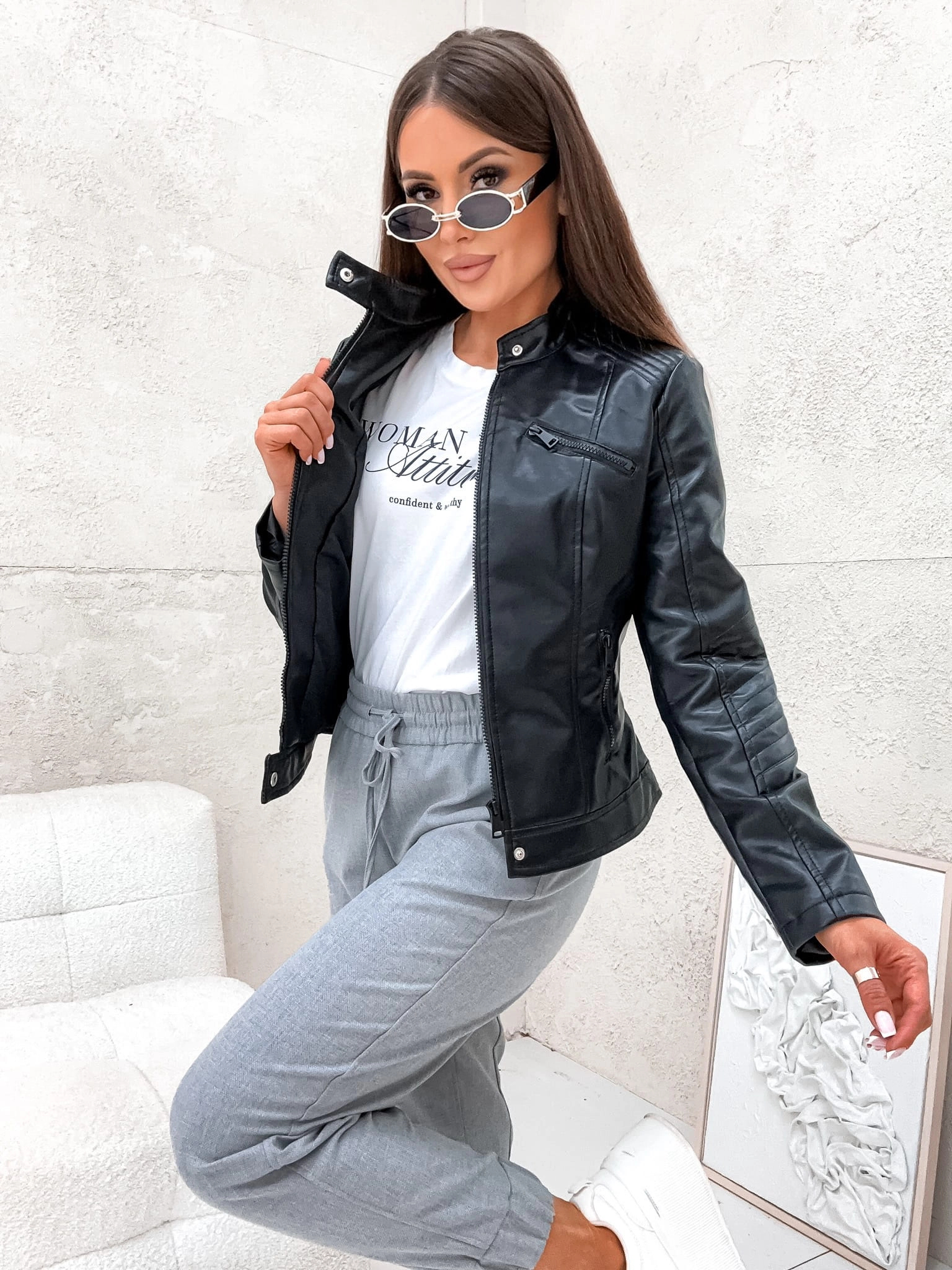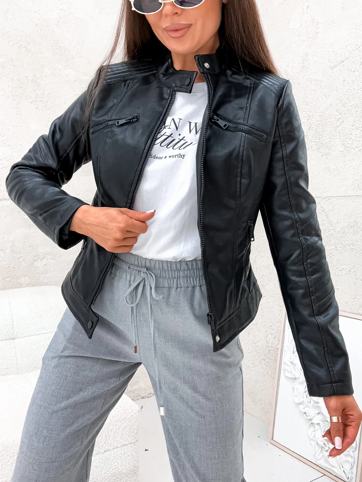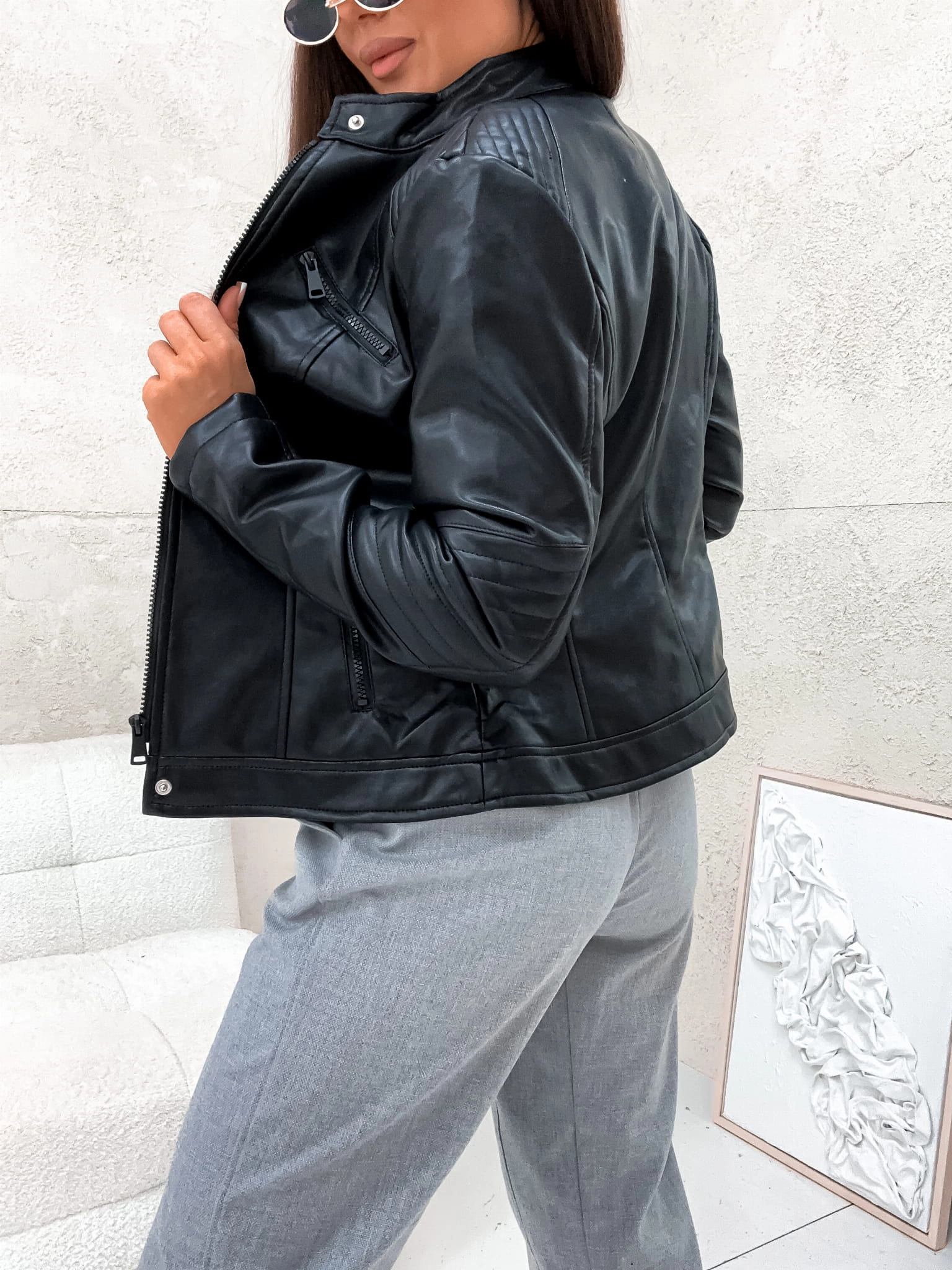 Wiosenna damska kurtka skórzana CHANELKA 8131 - CZARNA