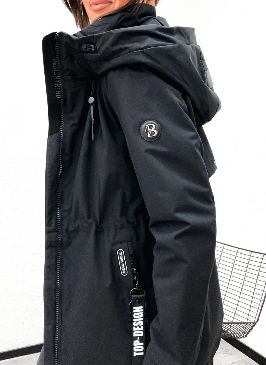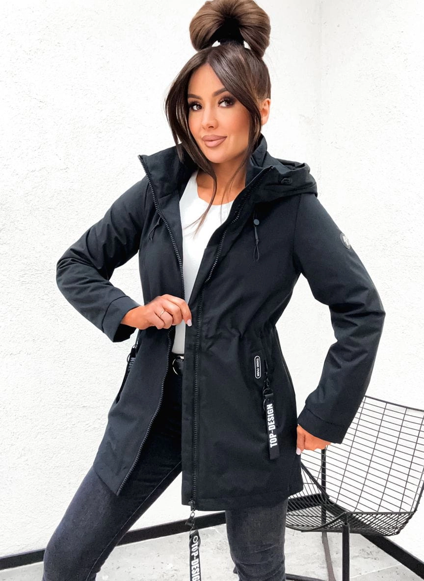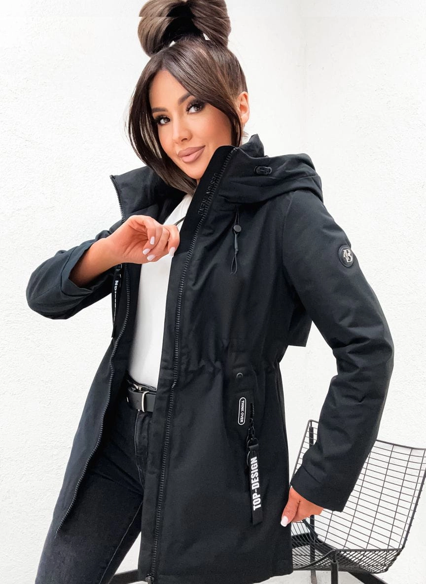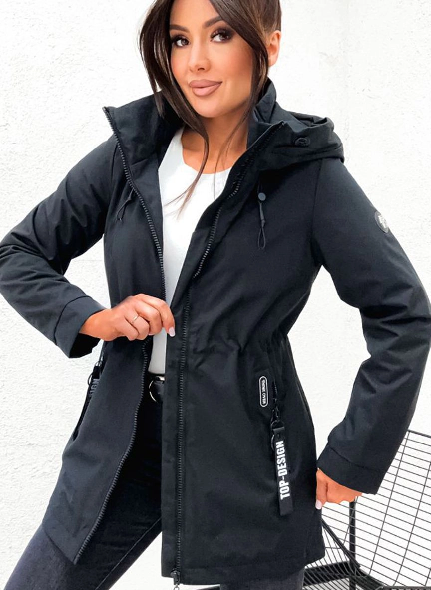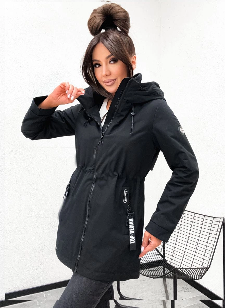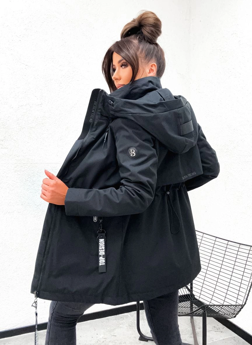 Wiosenna kurtka damska PARKA z kapturem 845 - CZARNA
