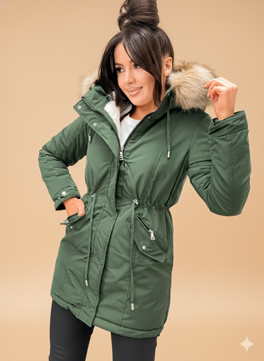 Odkryj nasz absolutny bestseller na zimowe miesiące – długą parkę damską z misiem w klasycznym, głębokim odcieniu zieleni. Model W611 to idealne połączenie ponadczasowego fasonu z zaawansowaną technologią izolacji termicznej. Jeśli szukasz ciepłej kurtki zimowej z futerkiem, która zapewni Ci komfort nawet w najniższych temperaturach, ten płaszcz damski jest stworzony dla Ciebie. Nasza zielona parka to gwarancja, że zima minie Ci w cieple i stylu.